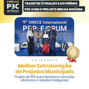 O projeto Brilha Goiânia, estruturado pelo @ipgcbrasil (Instituto de Planejamento e Gestão de Cidades) e do qual a Tradetek é uma das acionistas da SPE responsável pela execução, é finalista do Prêmio P3C 2026, na categoria Melhor Estruturação de Projetos Municipais – sendo a primeira capital com PPP de Cidade Inteligente do Brasil.